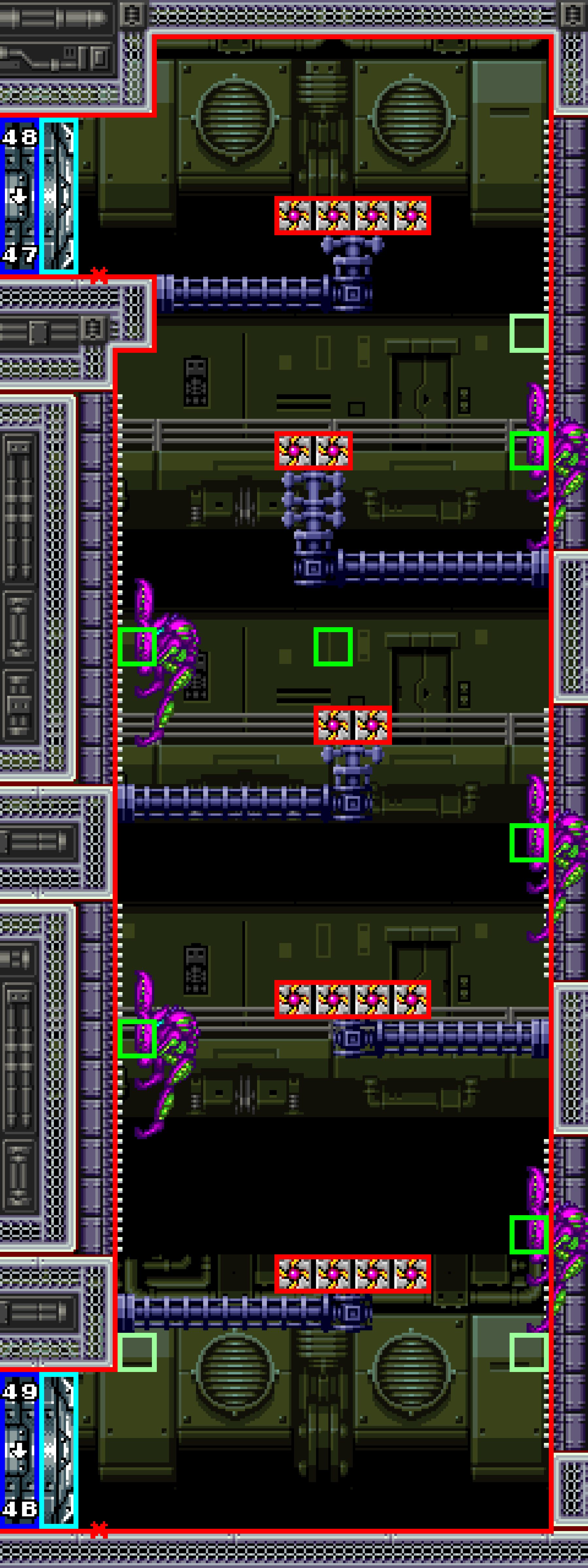 Zebesian Zag Metadata Internal Room ID: 0x23 Adjacent Rooms: Twin Junctions East (top left) Atmospheric Stabilizer Southeast (bottom left) Enemies Wall Zebesian