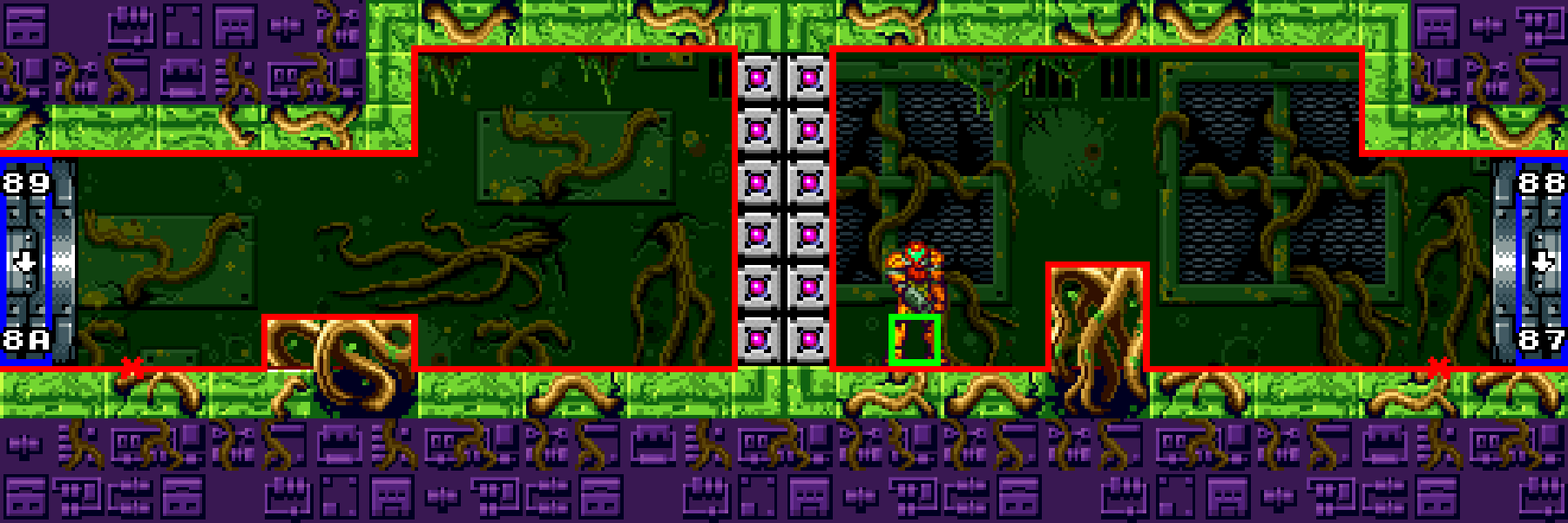 Overgrown Hallway Metadata Internal Room IDs: 0x38, 0x3C Adjacent Rooms: Overgrown Checkpoint (left) Overgrown Entrance (right) Enemies SA-X Flying Kihunter