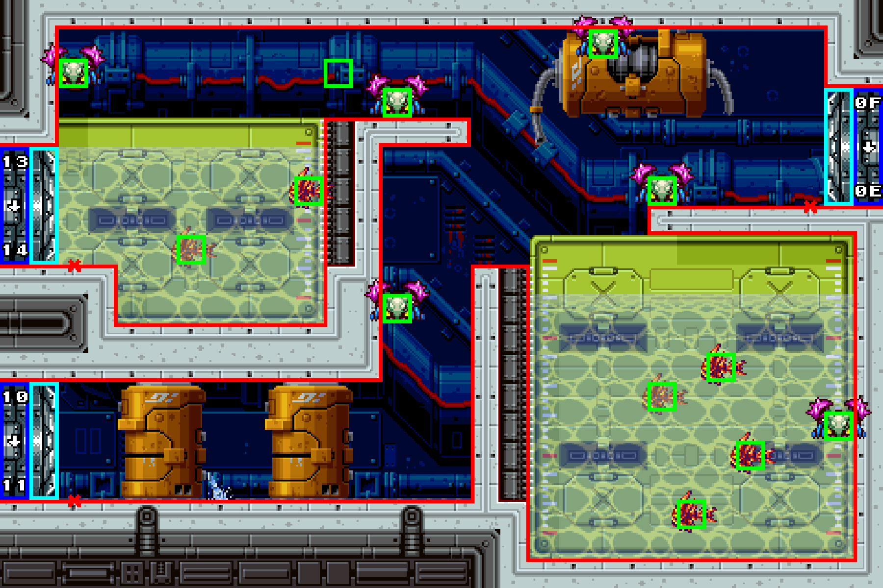 Skultera Cisterns Metadata Internal Room ID: 0x7 Adjacent Rooms: Bridge Access (top left) Reservoir East (top right) Reservoir West (bottom left) Enemies Sciser Small Skultera Large Skultera